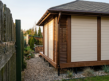 Все элементы постройки окрашиваются в 2 слоя с промежуточной и финишной шлифовкой. Стандартная краска Teknos Akrylin (цвет на выбор) по каталогу RAL Classic – более 1000 цветов. Масло, пропитка или другие производители красок – рассчитываются индивидуально