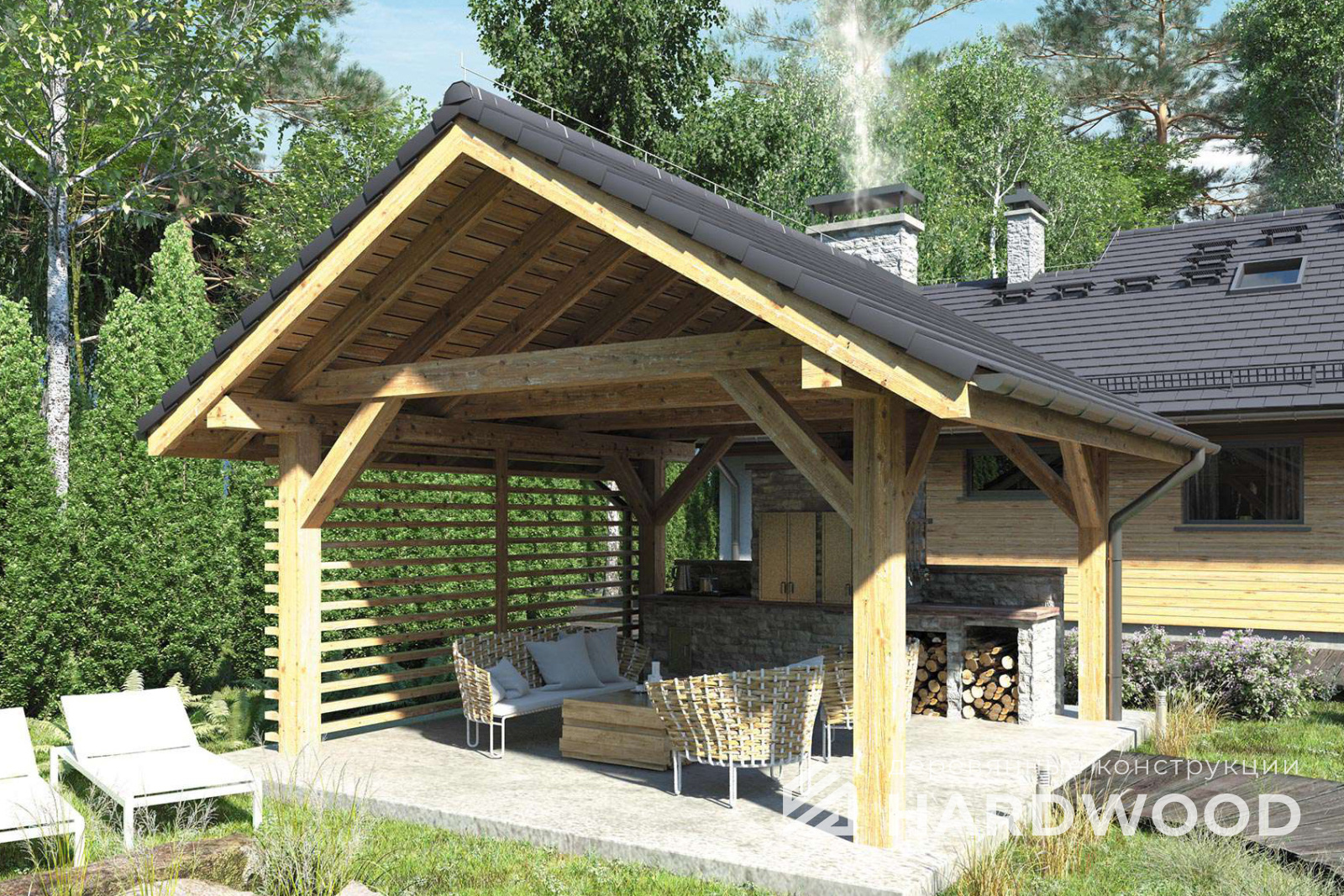| Название модели: | Деревянный навес для дачи №109 |