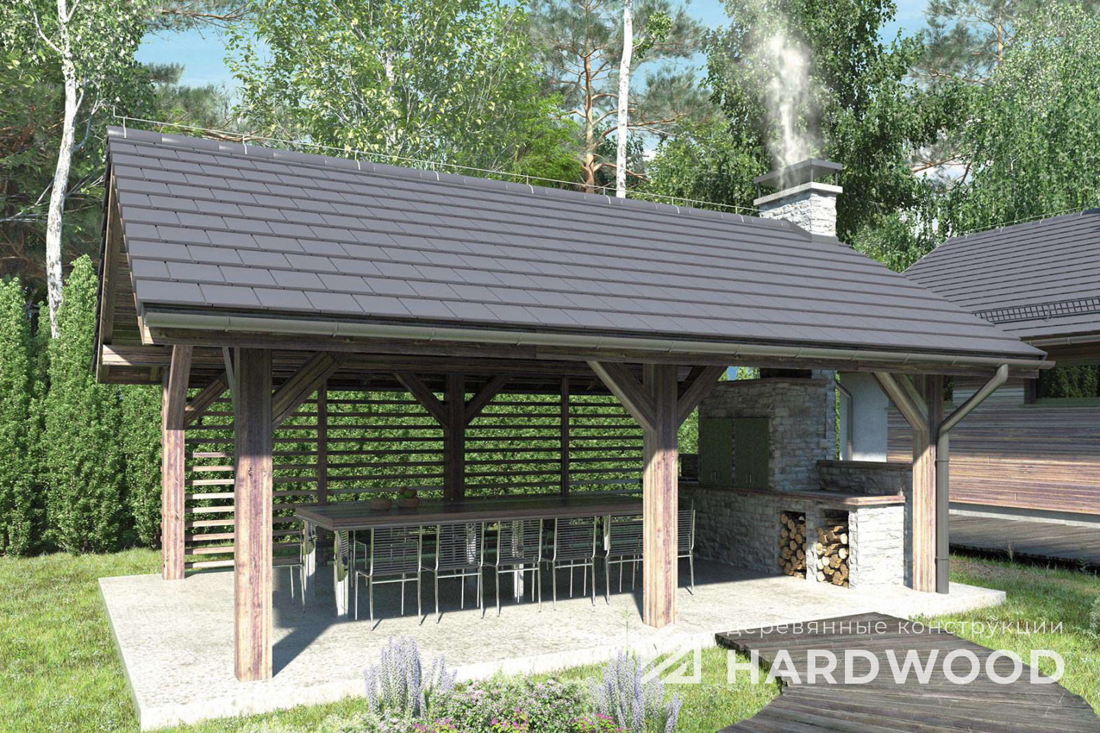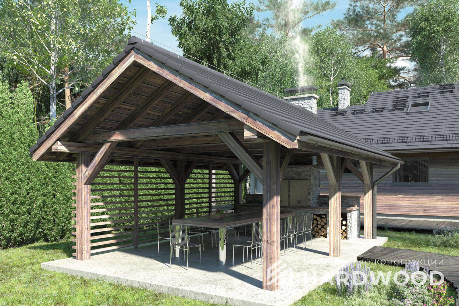 | Название модели: | Навес для дачи из дерева для барбекю №86 |