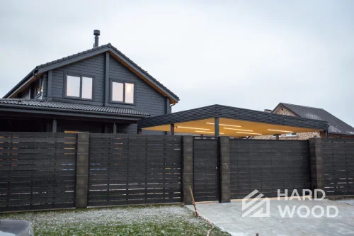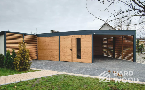 Навес для машины на дачу из дерева с хозблоком №73 - фото 1125